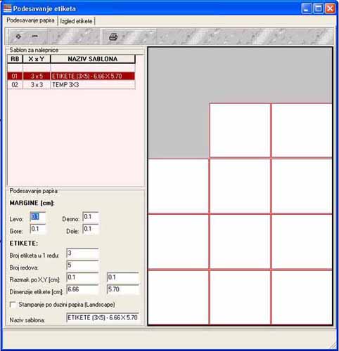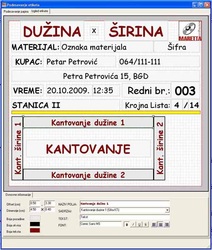 Ovaj modul omogućava štampanje etiketa za optimizovane elemente. Svaki korisnik može dizajnirati izgled etikete kakav mu odgovara. Moguće je snimiti više različitih izgleda etiketa i pozivati ih po potrebi. Interfejs je pravljen po uzoru na popularne programe što ovaj modul čini veoma jednostavnim za korišćenje. Unapredite vašu proizvodnju, olakšajte svojim kupcima/majstorima sklapanje nameštaja. Korisno je da svaki element na sebi ima nalepnicu na kojoj se nalaze svi relevantni podaci: dužina, širina, kantovanje, oznaka, ime kupca, sifra/oznaka materijala...